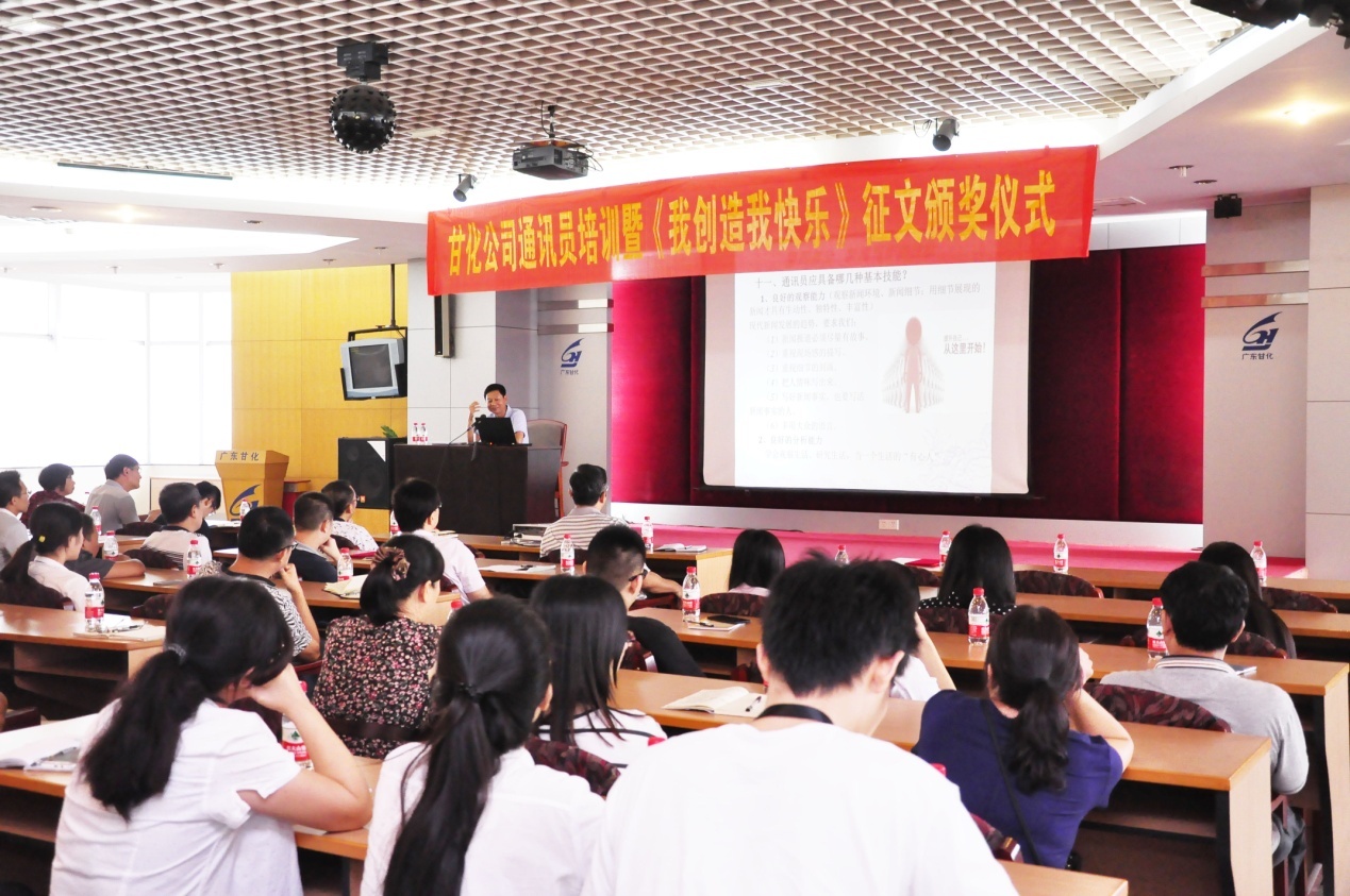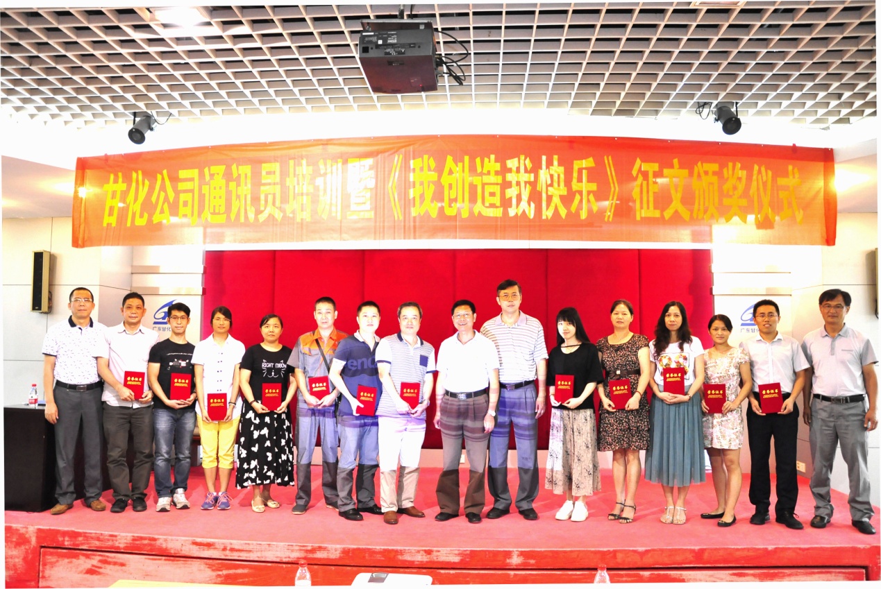 2016年8月25日下午,在甘化大廈17樓會議廳,公司黨委、工會舉辦通訊員培訓暨《我創(chuàng)造,我快樂》獲獎征文頒獎儀式。培訓由黨委書記、工會主席方小潮主講。公司黨委委員、各支部委員、工會委員和各單位通訊員等49人參加了會議。