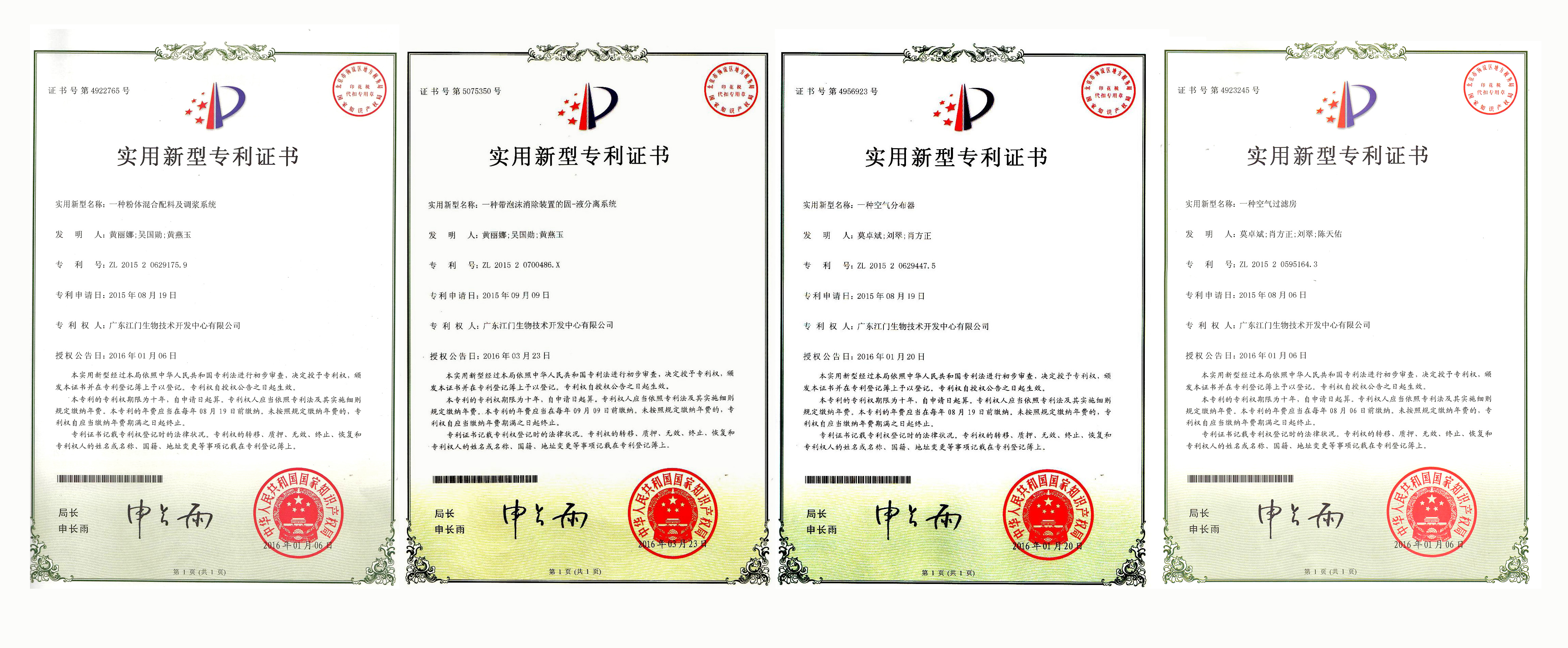 生物中心關(guān)鍵工藝設(shè)備取得4項實用新型專利證書